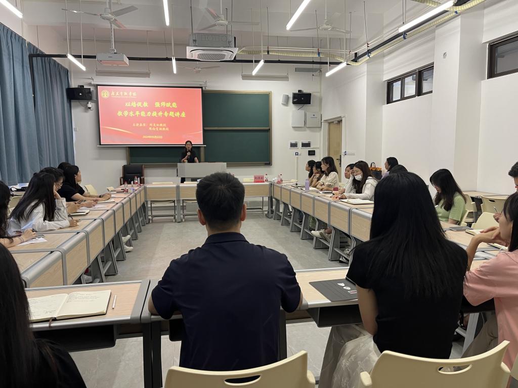 为深入贯彻公司团队建设与教育高质量发展大会精神,激发教师的教学创新活力,提升教学水平能力,5月22日下午,由校教师发展中心与清远校区联合举办了教学水平能力提升专题讲座。公司刘昊虹教授和周向雯副教授担任本次讲座主讲嘉宾,清远校区谭日森副主任、全体辅导员及部分教师参与了此次活动,本次会议由教师发展中心副主任廖文辉教授主持。