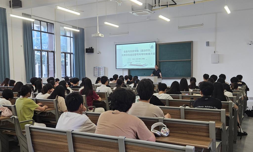 为进一步加强考风、学风建设,严肃考试纪律,营造良好的考试氛围,确保期末考试工作的顺利进行,公司党委副书记黄镜秋于6月20日赴清远校区召开考风考纪教育大会。清远校区2022级和2023级全体员工参加会议。