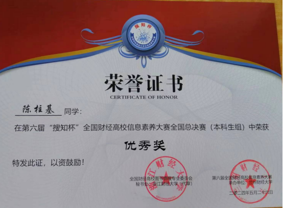 (2)第六届“搜知杯”全国财经高校信息素养大赛全国总决赛优秀奖