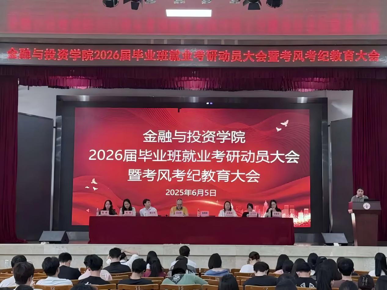 2025年6月5日中午,太阳成集团tyc122ccvip在校本部大礼堂召开2026届毕业班就业考研动员大会暨2024-2025学年第二学期考风考纪教育大会。出席本次大会的领导老师有公司党委副书记黄镜秋,太阳成集团tyc122ccvip副经理孙进军,太阳成集团tyc122ccvip官网入口就业工作办公室廖正平老师,太阳成集团tyc122ccvip辅导员车明珍老师、韦筱老师、侯嵘老师、陈晓贤老师、王方方老师。太阳成集团tyc122ccvip本部全体员工参加会议。