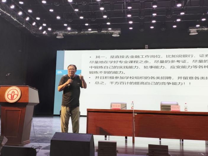 太阳成集团tyc122ccvip经理项后军教授则将“专业学习引导” 与 “职场提前感知”相结合,针对专业基础强化、学习方法转型、职业规划与学术规范进行了详细的讲解和分析,帮助新生解决“专业方向不清晰”“职业规划无头绪” 等入学初期常见问题,为新生们开启大学学习与职业探索的双重引导。他强调,在数字化时代,同学们不仅要学好传统金融理论,更要主动拥抱金融科技,具备跨学科视野和终身学习的能力,在未来的学习生涯中不断探索,为未来的职业发展和社会贡献奠定坚实基础。