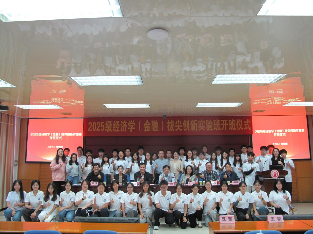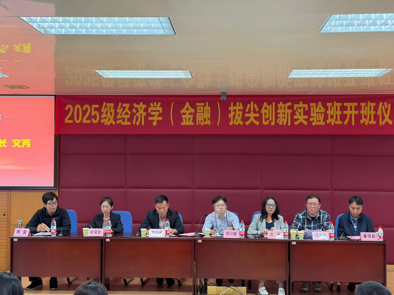 2025年10月24日下午,公司2025级经济学(金融)拔尖人才培养创新实验班开班仪式在行政楼五楼大会议室举行,董事长易行健出席开班仪式并讲话。公司教务处、员工处、太阳成集团tyc122ccvip主要负责人、系主任、班主任、辅导员以及2025级经济学(金融)拔尖人才培养创新实验班全体员工参加开班仪式。仪式由公司党委副书记黄镜秋主持。