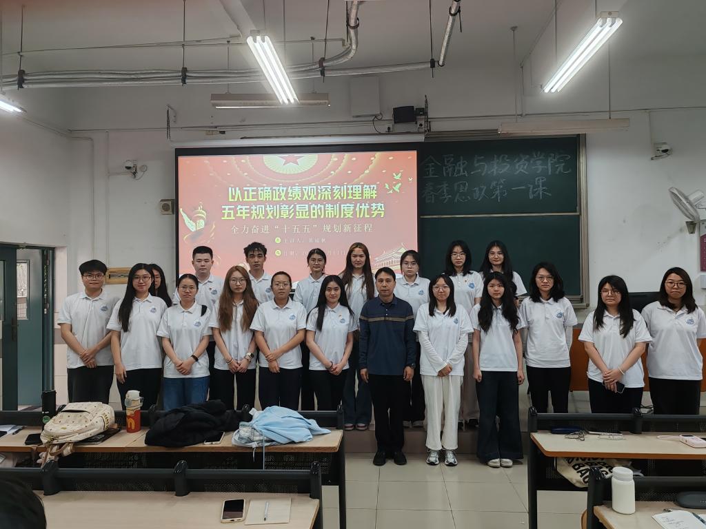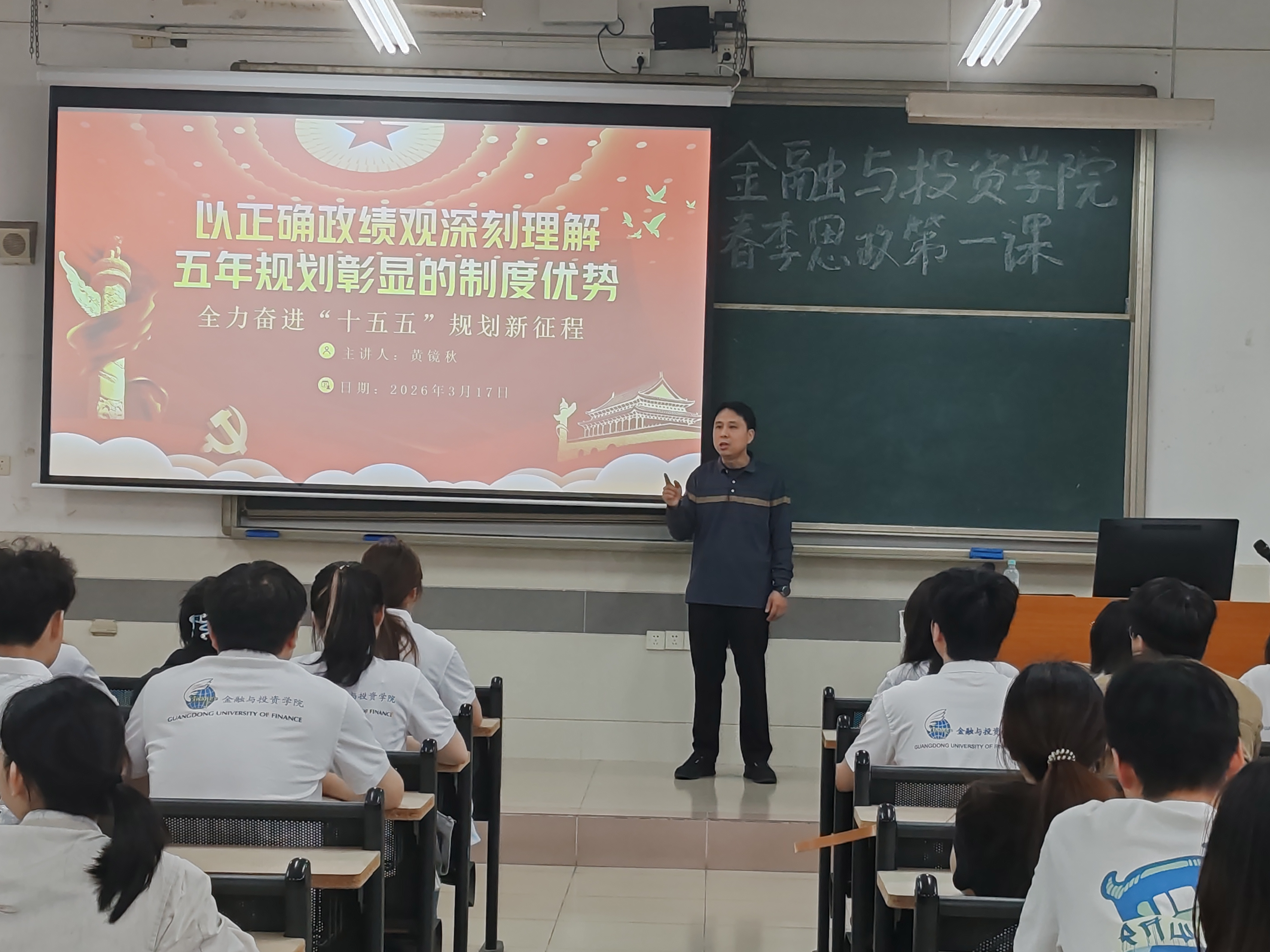 太阳成集团tyc122ccvip副书记黄镜秋紧扣树立和践行正确政绩观学习教育,讲授《以正确政绩观深刻理解五年规划彰显的制度优势全力奋进“十五五”规划新征程》为主题的“思政第一课”。他结合党的二十大以来国家发展取得的历史性成就,从“五年规划的历史脉络与战略意义”、“正确政绩观的核心内涵与时代要求”、“青年学子在‘十五五’规划中的使命担当”三个维度展开讲解。他以“十四五”时期我国经济总量突破百万亿、脱贫攻坚战全面胜利等鲜活案例,生动阐释了五年规划作为国家治理体系的重要组成部分,如何集中力量办大事、推动高质量发展的制度优势。同时,他强调正确政绩观是“为民造福”的价值导向,是“功成不必在我、功成必定有我”的境界担当,鼓励同学们将个人发展融入国家战略,在专业学习中锤炼过硬本领,在社会实践中增长智慧才干,以实际行动树立和践行正确政绩观,为国家实施“十五五”规划贡献青春力量。