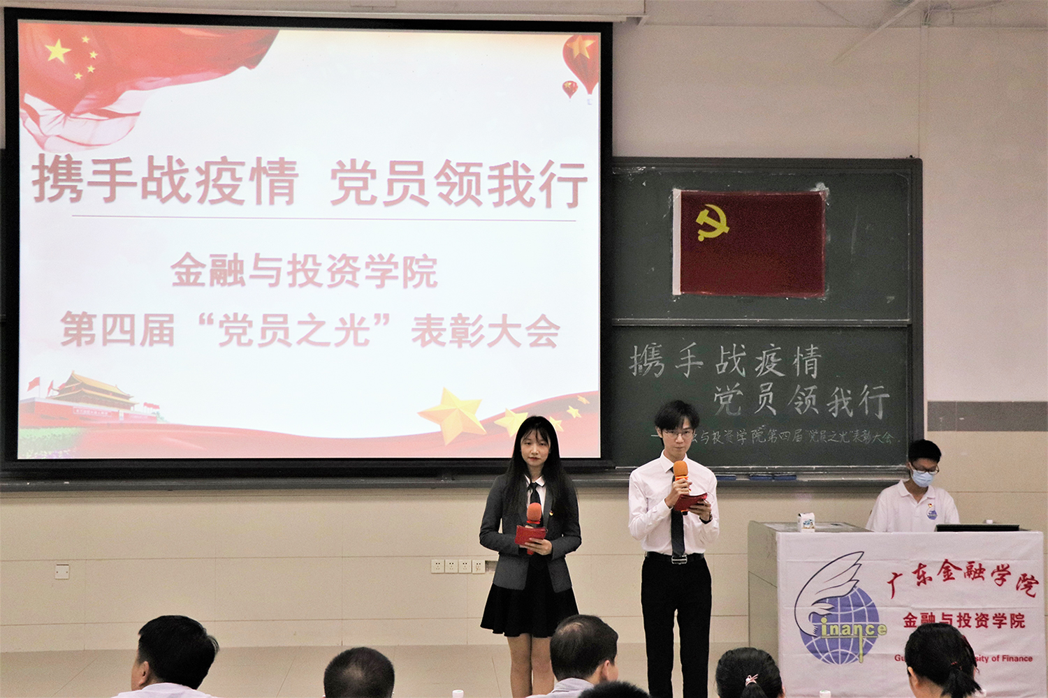 本次大会在《国际歌》的歌声中拉开帷幕。随后主持人介绍了评奖标准,并隆重宣读了获奖人员名单。奖项包括:“党员先进个人”、支部“活跃标兵”、“抗疫党员先锋”等九项内容,周少龙书记等领导和老师为获奖党员颁奖并拍照留念。大会过程中还穿插了声乐队《坚信爱会赢》的演唱,播放了诗歌朗诵《因为有你》抗疫视频。视频彰显了党员本色,同时为防疫工作起到了很好的宣传作用。随后,优秀员工党员代表林雯淑同志上台发言,她号召同学们做到“不忘初心、牢记使命”,继续前行。大会上,优秀党支部代表杨丽谕同志对获奖党支部风采进行展示,弘扬了一个齐心协力的优秀团队精神,提高了到场党员及入党积极分子对党的先进思想认识,强化了团结合作意识。