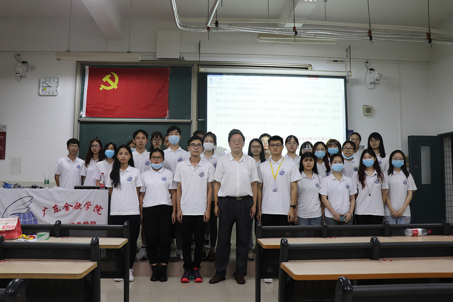 项经理则从“中国经济内外循环逻辑”视野开展党课的内容。项经理阐明我国开放型经济发展的条件和环境正发生的重大变化,讲诉以国内大循环为主体构建双循环的发展格局,就是要实施基于内需的经济全球化战略。同时,项经理就相应规划提出了建议,新环境下需要新发展格局和新战略转向。现在随着我国经济发展水平的迅速提升,我国的优势已经发生了重大的改变,必须考虑我们自己的竞争优势已经从低成本转向以内需为主。最后,项经理强调我们要紧跟时事发展学习,呼吁同学们应当了解这个时代的命题所在,鼓励金融学子要将“个人梦”和“中国梦”结合起来,争取成为契合时代的人才