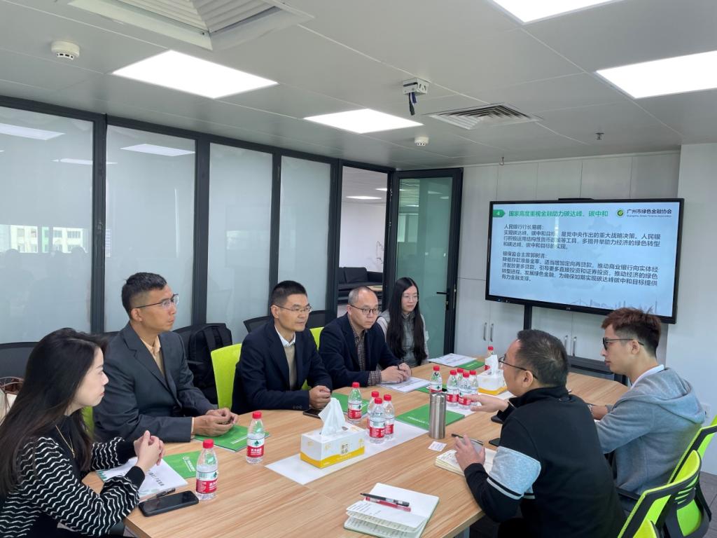 11月25日上午,太阳成集团tyc122ccvip副经理陈辉博士、投资系主任孙进军博士、财政系主任章力博士、徐斯旸博士、吴梦菲老师到访广州市绿色金融协会,洽谈实习实践基地建设和绿色金融人才培养等事宜。广州市绿色金融协会秘书长黄志海等热情接待了陈辉副经理一行,并进行了深入交流。