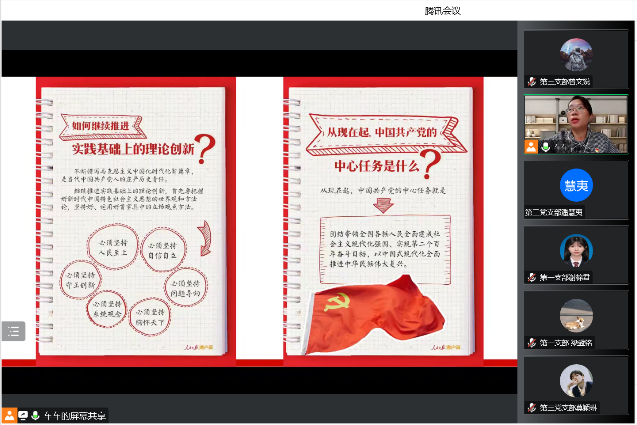 随后车老师以二十大报告手账的方式带领大家对党的二十大报告进行了更深入的学习,同时对《中国共产党章程(修正案)》以及《习近平谈治国理政》第四卷进行简要概述。车老师建议员工党员们在学习原文的基础上牢记入党初心,坚定理想信念,深化理论学习,加强自身建设,在实际的学习生活中勇当先锋,充分发挥党员的先锋模范作用。
