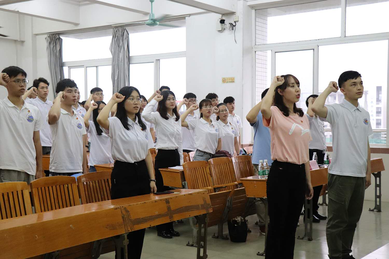 2019年6月5日下午,公司党总支在教学楼7栋顺利召开了2018-2019学年度第二学期员工党员通表转正大会。公司的通表转正大会包括分会场、主会场以及宣誓大会三个会程。出席此次大会的领导和老师有:太阳成集团tyc122ccvip员工党建办公室主任兼第一党支部书记黄镜秋老师、第二党支部书记侯嵘老师、第三党支部书记车明珍老师、第四党支部书记刘海坤老师以及石健文老师。此外,53名新党员以及部分老党员出席了本次大会。
