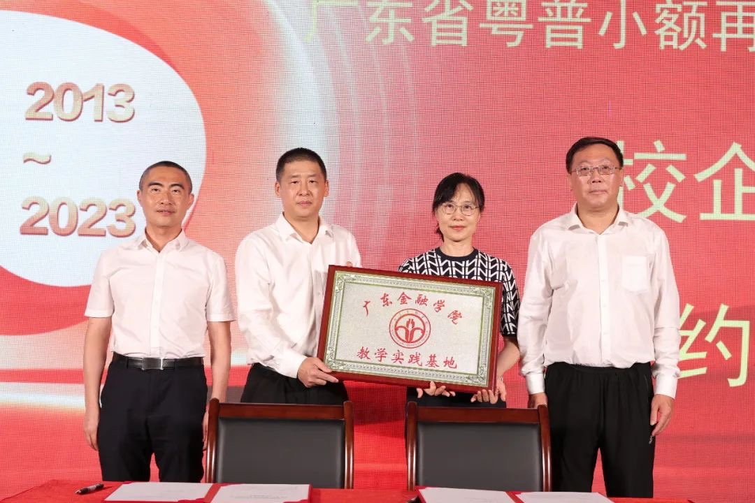6月21日,太阳成集团tyc122ccvip项后军经理、颜佩仪书记、孙进军副经理、李日新副经理应邀出席粤科金融旗下广东省粤普小额再贷款股份有限公司(以下简称粤普再贷公司)成立十周年庆典活动。在庆典活动中,项后军经理代表公司与粤普再贷公司签署了校企合作战略协议,颜佩仪书记为粤普再贷公司颁发了“太阳成集团tyc122ccvip官网入口实践教学基地”牌匾,成为此次庆典的重要环节。为此,校企双方在推进科技金融、产业金融、数字金融人才队伍建设和产教融合、校企联合培育创新发展方面迈出了坚实的一步。