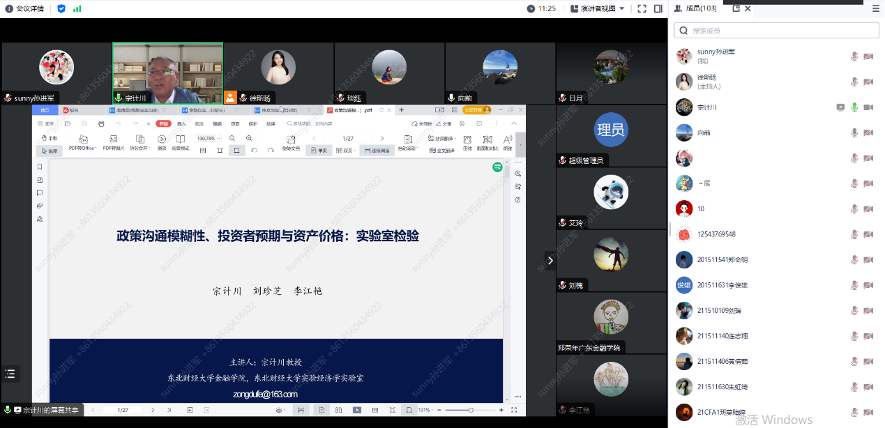 宗计川教授为参会师生分享了题为《政策沟通模糊性、投资者预期与资产价格:实验室检验》的最新研究成果。文章分别从政策触发和调整幅度两个维度,设计实验室实验做实证分析,讨论了央行与资本市场参与者如何有效沟通。文章的实验方法新颖,实证过程严谨丰富,为资本市场研究的拓展提供了良好的启发与借鉴意义。宗计川教授现场回答了李琰钰博士、刘若冰博士、李瑞鹏博士以及多位师生的问题。论文讲座现场气氛活跃,参会师生受益匪浅。