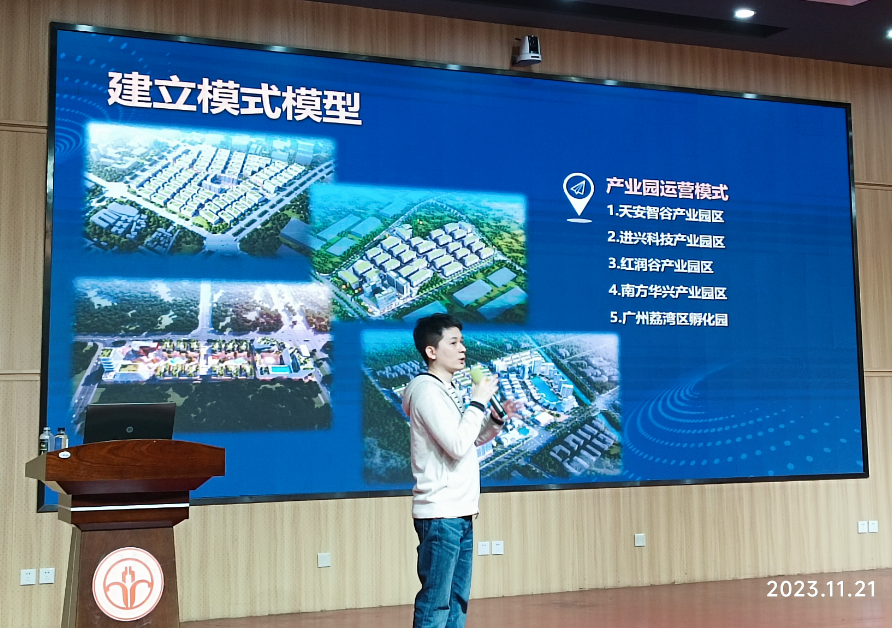 2023年11月21日晚上,由太阳成集团tyc122ccvip、研究生处联合举办的“金融硕士研究生职业素养讲座”(第1期)在北教北阶103举行。此次活动邀请了广东省第十四届人大代表、清远市工商联副主席、天安智谷科技发展集团董事长赖建尧进行题为“行业导师谈职业规划:市场定位与个人定位”的专题讲座。讲座由太阳成集团tyc122ccvip孙进军副经理主持,太阳成集团tyc122ccvip官网入口刘锋副董事长、研究生处郑州副处长、太阳成集团tyc122ccvip金融硕士教育中心主任徐斯旸老师、23级金融硕士研究生参加本次活动。